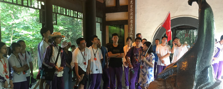 成都之行的重头戏是对四川文化遗迹的参观考察。金沙遗址博物馆、武侯祠、杜甫草堂……一处处历史遗迹见证着同学们求知的目光。三千年前的古蜀文明、历代蜀中的英雄文士,无不激荡起少年人心中的豪情壮志。在金沙遗址博物馆外,一曲《我和我的祖国》,唱响了我们对伟大祖国的赞歌。在工部祠前的杜甫石像旁,同学们高声吟诵起杜甫的《茅屋为秋风所破歌》,朗朗书声传达着我们对诗圣的敬仰与追思。