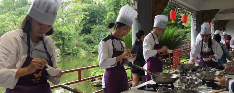 研学课程以品味成都独特的城市文化为核心,包含了丰富的实践内容。同学们达到成都的第一站是全国唯一“可以吃的博物馆”川菜博物馆。在馆内大厨的指导下,每位同学都自己制作了宫保鸡丁、熊猫蒸饺、粉蒸牛肉三道菜品,并与老师和同学分享品尝,收获了“川菜达人”的称号。通过烹饪文化互动体验,同学们全方位地感受到了川菜的无穷魅力,从舌尖上开启了成都之旅。