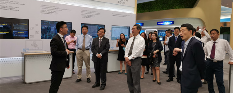 签约仪式前,清华大学党委常务副书记、清华大学校务委员会副主任姜胜耀,澳门网上博彩一体化学校校长王殿军及八位一体化学校执行校长在华为领导的带领下参观华为数字化转型展厅。