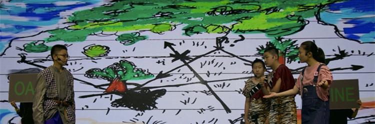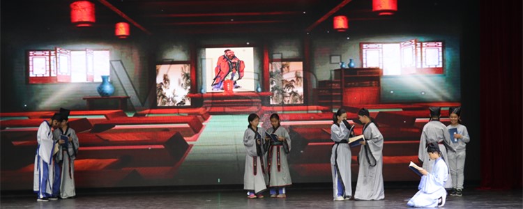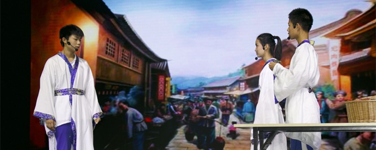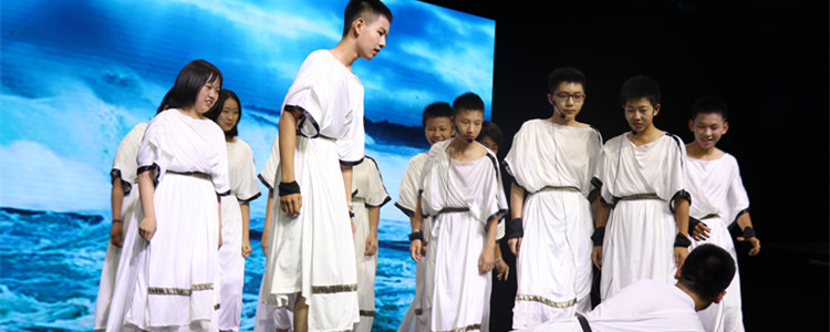 本次舞台剧的主题是“数”。十四个班的学生分为七组,分别呈现一个内容。初1801和初1809班的《自然之理》讲述了自然数中数字0由印度传入阿拉伯国家的故事;初1802和初1807班的《分子之名》探寻了分数的发展历程;初1803和初1805班的《无理危机》重现了无理数诞生的故事;初1804和初1808班的《黑色算筹》演绎了中国古代数学家刘徽改进算筹表示正负数的心路历程;初1806和初1810班《“i”sland》以英文剧的形式叙述了一个关于虚数i的故事;初1812和初1813班《无穷至极》讲述了一段祖冲之、祖暅父子的割圆术和他们推算圆周率的历史;初1811和初1814班的《e诺千金》表演了一段关于自然常数e与计算复利的有趣故事。