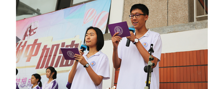初三代表初1601班叶维桢(右)、初1613班周亚琪(左)宣读中考宣言