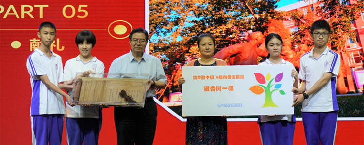 在献礼环节,初16级给学校捐赠了两份毕业礼物——一颗银杏树和签有初16级全体师生名字的羊皮册。祝福母校根深叶茂,万古长青,并将自己的青春记录在附中新百年的历史中。