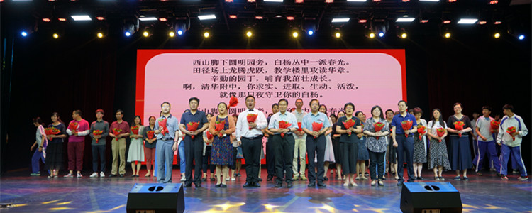 最后,全体起立合唱校歌,学生代表上台给老师献花。赵岩老师庄重地宣布:毕业典礼礼成!