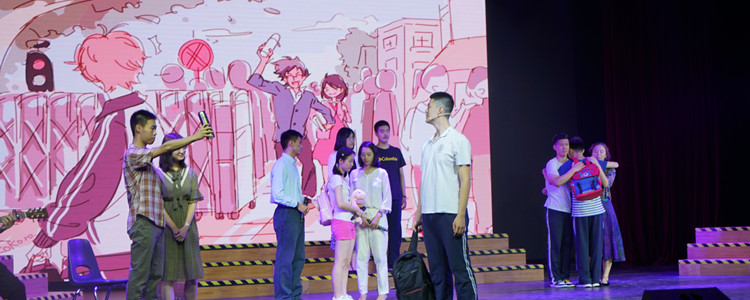 在我的兄弟姐妹环节,各班的学生代表在舞台上,用班级流传了很久的“搞笑梗”,一句话介绍自己的班级。“记得有些班级男生多,老师看着他们蠢蠢欲动的样子怀疑他们想溜出去打球,结果他们连连否认,说心里想的全是物理的“带电小球”“我们班当时就一个男生,接力赛都是他一个人的成绩乘四......”真诚而熟悉的言语,同学们略带夸张的表演,让各班同学在哄笑中感动不已。