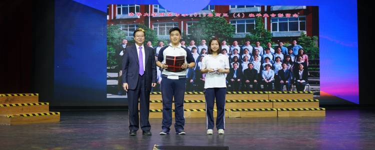 王殿军校长、方妍书记、解巨钊副校长、白雪峰副校长代表学校接受学生献礼