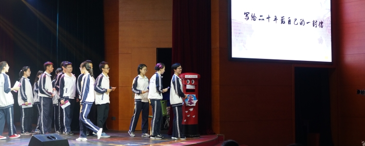 舞台剧的最后一幕,我的梦想。同学们在这里大胆畅想自己的未来。在《和梦一起飞翔》悠扬的音乐下,同学们将写给20年后的一封信,装进精心设计的高16专属信封,投进了信箱,许下了毕业的愿望。