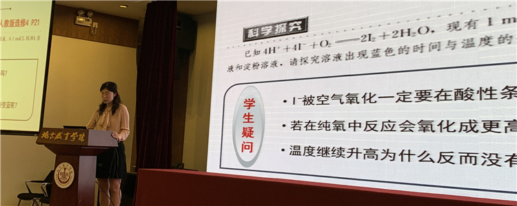 本次展示活动由初审的一等奖作品中遴选出十五名选手进行现场展示决赛,角逐创新实验说课展示的特等奖和一等奖。澳门博彩在线教师宋兆爽老师参加了现场说课展示,她展示的题目为《碘化钾与氧气反应的创新实验研究》,深入挖掘课本的知识生长点,从学生熟悉的素材入手,培养学生不断思考、勇于质疑并学以致用来解决问题的能力,并融入了控制变量等科学思想,十分符合现在新课标的教学理念。最终,宋兆爽老师凭借优异表现荣获现场说课展示的特等奖。