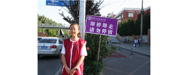 说起来,在我第一次踏入附中校门时就被地上的图画所吸引。后来我才知道那是水木行动的杰作。我一直想参加水木行动,我也想穿上那耀眼的红背心,投身于校园志愿服务中。每天校门前那一个个温暖的笑脸让我更加热爱附中的一切,我时刻准备加入到他们中来。日复一日的努力,在尹老师的带领下,我们拿到了三星班级后终于如愿地可以参与两周的水木行动。我们全体同学都充满了自豪之情,我心中一直有一个信念:加油!学校既然将这个任务交给我们班,我们就不能让大家失望!我们全班同学克服种种困难,积极参与到校园服务中来,让附中的美丽与我们有关。我被安排的是周四的交通岗,前几天看着同学们那红色的背心成为一道亮丽的风景线。我心中依旧温暖,我们班的同学在尹老师的教导下学会了微笑问候,举着特色标语如“早晨起来拥抱太阳”、“新的一天新的开始让身体充满正能量”等温暖人心,还有90°鞠躬加上早上好来欢迎每一位老师和同学,尽管这样会累一些,但是相信所有人都会心里温暖。所以,我们班同学再辛苦再累也坚持下来了。我是第一次站交通岗,起初还是很紧张的,但是,因为集体的力量让我适应了这项工作。和其他同学一起站岗看着她敲车窗后,我也会对长时间逗留的车辆礼貌提醒。如果是有前面的车辆堵塞的情况,或是有同学身体不适,我们就不会前去打扰。因此,家长们也会积极配合我们的工作,做到即停即走,这时我们会欣慰一笑。我虽然家里离学校比较远,清早5:40就起床了,但是看见校门口没有堵塞,车辆畅通,同学们都能顺利进入校门,我们的付出也是值得的,这不但培养了我的交流能力,而且让我在这项活动中得到了锻炼和成长。