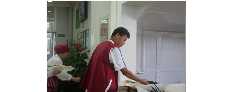 这一次活动我认为非常有意义。在天气非常炎热的中午,我们大家都穿着特殊的红色马甲为同学们服务,我也明白了很多道理。首先食堂的工作人员每天中午到忍受着炎热,来来回回的工作。非常非常的辛苦,而这些都是为了让我们有一个好的饮食环境。我还觉得同学们的自觉性还是很重要的。因为在我们工作的时候,很多同学都能够做到送盘,但是应有个别同学是做不到的,如果我们都能做到,那么是否可以让阿姨减少一些工作量呢?最后还懂得了坚持完成工作,不论有多么艰难,天气有多么炎热。感谢食堂的工作人员,也感谢同学们的付出。