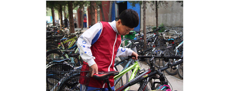 邢耘同学在摆放自行车