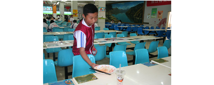 刘奕锋同学在食堂收拾餐桌