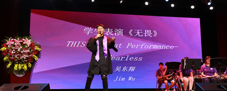 接下来,毕业生吴东翔表演了双语说唱《无畏》。他用歌声诉说2019届毕业生们的心声。澳门网上博彩国际部合唱团带来一曲《这就是我》。同学们用甜美的声音唱出他们对毕业生的深深祝福和对未来的无限憧憬。