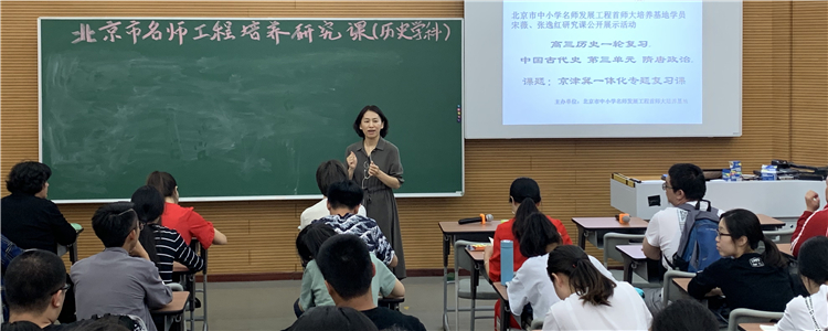 2019年5月23日下午,在澳门博彩在线举办了“北京市名师发展工程”首师大培养基地学员研究课教学观摩活动。参与本次活动的有:名师培养工程历史学科学术导师杨朝晖教授、实践导师中国人民大学附属中学李晓风教授;名师工程班第四期学员:澳门网上博彩朱培老师;第五期学员:澳门网上博彩历史组组长宋薇老师、北京四中历史组组长徐雁老师;第六期学员:西城区历史教研员张逸红老师和顺义区教研员赵艳兵老师,此还有历史学院本科生和教师教育学院教育硕士研究生等共计50余人。