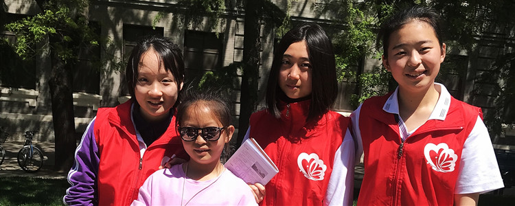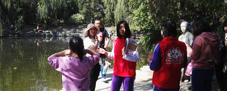 附中志愿者与游客在清华校园合影