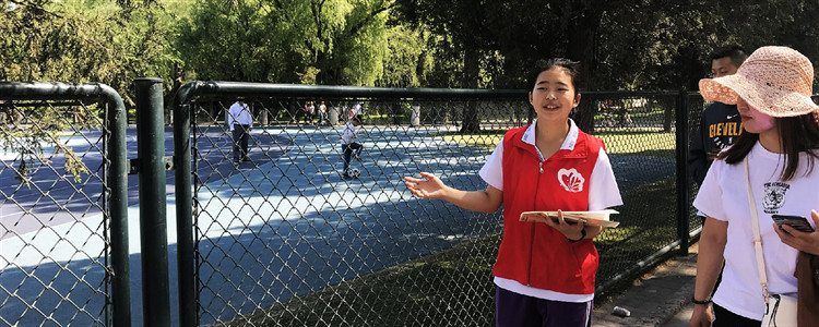 附中志愿向游客介绍清华校园