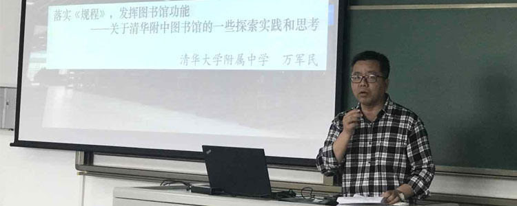 澳门网上博彩图书馆馆长万军民从学习贯彻2018年5月教育部修订颁布的《中小学图书馆(室)规程》的角度出发,汇报交流了附中图书馆在加强馆藏资源建设、阅读活动的开展、图书馆校本选修课程的开设以及课题研究等方面所做出的努力和尝试。