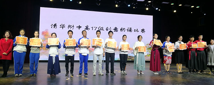 本次活动由高二年级组、高二语文组、学生发展中心团委学生会联合主办,大赛评出集体表演奖项外,还评出了最佳海报设计奖、最佳导演奖、最佳文案奖、最佳男女声奖、最有创意奖等若干奖项。陈彦竹老师、邱道学老师和评委们为获奖班级和个人颁奖。