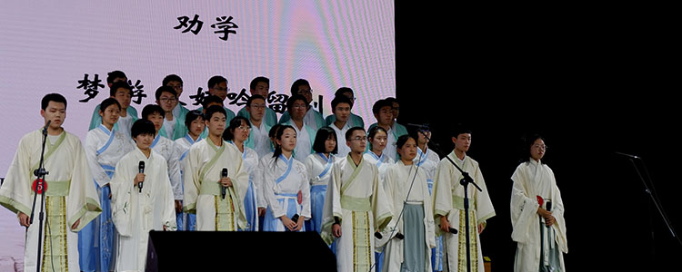 比赛中,各班的朗诵或激情澎湃、慷慨昂扬,或深情款款、低回温柔,都声情并茂,令人沉浸其中。两个半小时的比赛,与其说是竞技,不如说是同学们共同为所有观众奉献了一场精彩绝伦的视听盛宴。