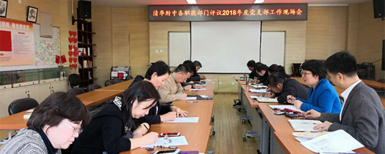 为顺利做好现场评议,各党支部围绕落实立德树人根本任务,突出重点,深化学习,准确把握党中央要求,打牢民主评议的思想基础,并积极开展谈心谈话,广泛征求意见,联系实际查摆问题。附中党委根据《清华大学党支部工作评价指标体系(试行)》,结合附中实际,分别组织了在职党员学习记录本的抽查以及各职能部门评议党支部工作。附中党委随机抽取各党支部包括领导干部在内的全体党员学习记录本的三分之一,集中评议近50本学习记录本。各职能部门分别从服务引领党员群众、服务中心工作、师德师风建设、落实意识形态工作、党员工作态度以及成绩5大方面对各在职党支部进行评议。