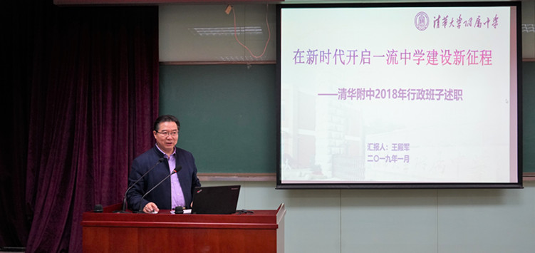 校长王殿军做行政领导班子述职汇报,重点介绍了本年度全面贯彻党的教育方针、深化教育改革、拔尖创新人才培养、文化引领、科学管理、积极承担社会责任等各方面的工作和成绩。