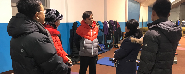 离开校史馆,参观一行来到了清华大学东大操场运动员训练基地。首先,由马班教练李光明老师向大家介绍了附中田径运动员的每天训练项目和强度。然后,党员老师们来到了室内训练场地看望正在训练的附中运动员们,仔细聆听李光明老师和陈广老师介绍有关各种器材的训练功能及使用方法。下午5点,正值田径运动员训练时间,李光明老师耐心向老师们介绍了运动员们正在训练的项目和目的。党员老师们也和几位特长生们进行了简单的交流。