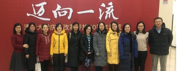 进入校史馆,首先映入眼帘的是主题为“迈向一流——清华大学庆祝改革开放40周年展览”的展板。对面“迈向一流”四字,党员教师们深切感受到所担责任之重,所处团队之优秀。