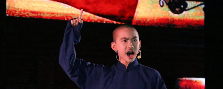 高18级的同学们用他们在舞台上精彩的表演,演绎了一段写满血泪的抗战史,表达着他们对革命先辈们的崇高敬意。那一幕幕凝聚着全班同学智慧与心血的剧目,带给我们沉思,让我们追忆,以最为别样而深刻的方式带给我们感悟。当全班同学围于剧本前出谋划策之时,我们感受到的是从前不曾深刻体会的班级凝聚力;当寄托着班级厚望一步步迎着聚光灯走向舞台上之时,我们感受到的是前所未有的责任感与使命感;当看着演员怀着满腔的激愤在舞台上振臂高呼之时,为国效力的万丈豪情在年少的胸中激荡……