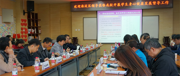 11月22日下午,海淀区学生身心健康发展专项督导工作组莅临我校,在工作组组长贾利,主责督学纪世铭、韩英,以及卫生专项组组长江初、体育专项组组长郭金贵,心理专项组长王红霞,红会专项组组长王燕的带领下,对澳门网上博彩的卫生、体育、心理健康、红会工作进行专项检查。学校领导高度重视,澳门网上博彩校长王殿军,副校长白雪峰、赵鸿雁,党委副书记张洁等校领导及各职能部门负责人参加迎检并积极配合工作组完成访谈、问卷调查、实地考察工作,并进行相关工作汇报。