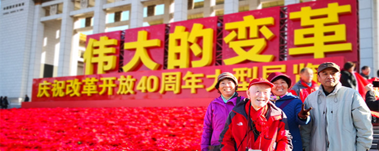 中国国家博物馆门前,“伟大的变革”五个大字巍然矗立。党员们纷纷驻足拍照留念。展览以坚持和发展中国特色社会主义为主题,紧扣改革开放40年历程,紧扣改革开放的历史纵深感、群众获得感、发展成就感,安排设计了6个主题内容展区,多角度、全景式集中展示改革开放光辉历程、伟大成就、宝贵经验,展示党的十八大以来以习近平同志为核心的党中央高举改革开放旗帜、推进全面深化改革、扩大对外开放的战略决策部署,展现党中央将改革开放进行到底的政治魄力和坚定决心。