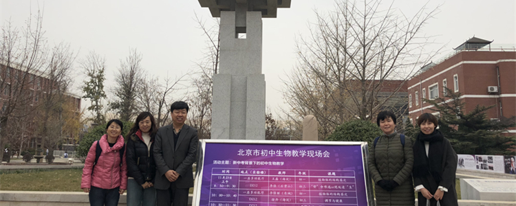 北京教育科学研究院乔文军老师(左三)、生物教研组组长刘健(左二)与部分参会教师合影