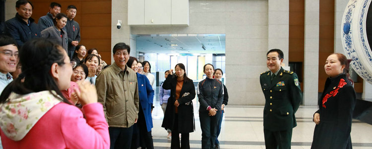 翟志刚和党员教师们交谈