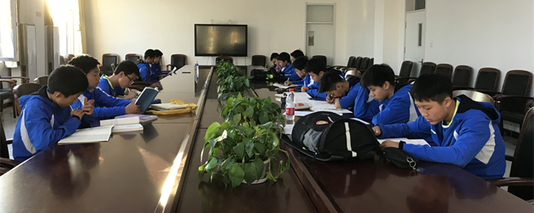 利用休息时间学习文化课程的队员们