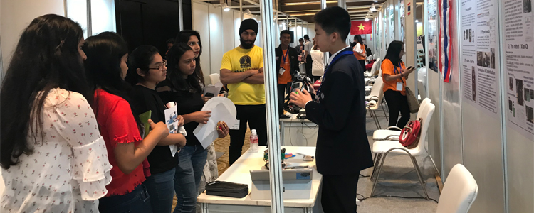 赵云琦同学此次参赛的作品是在谢元凯、谭洪政、邱楠老师的指导下完善的第一代孤独症儿童辅助教育机器人,以及继续深入研究ABA行为分析法后开发的第二代机器人。展评中,赵云琦同学用英文为每一位专家评委讲解作品的技术细节和意义,并接受问辩,得到评委的高度评价。在公众展示过程中,他还与各国参赛选手积极交流,碰撞出很多科技创新的火花,同时也体会到印度青少年科技爱好者对创新创业的极大热情。