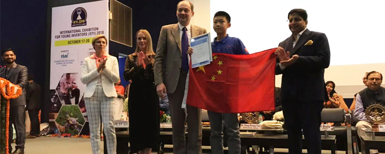 2018年10月17日至20日,第14届世界青少年发明展在印度德里举行。来自澳门博彩在线初1708班的赵云琦同学的《孤独症儿童辅助教育机器人》项目荣获本次发明展的最高奖——“世界青少年发明展金奖”,以及“Gorodissky专项奖”,并获得资助参加2020年在俄罗斯举办的世界青少年发明展。
