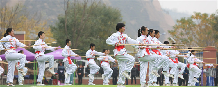 富有陕北地方特色的安塞腰鼓表演,激情澎湃的武术短棍表演充分展现了我校师生斗志昂扬的精神面貌和奋发向上的精神气质。