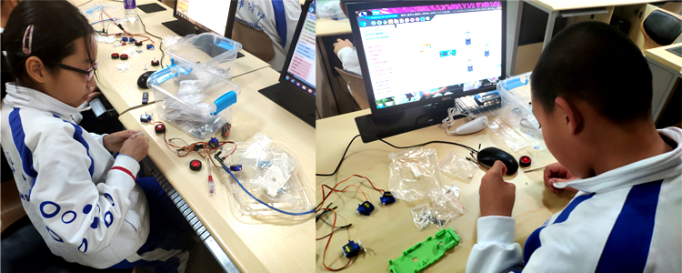学生们正在通过程序进行控制福特T型车以及完成底盘的安装