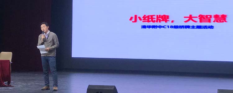 10月18日下午,澳门网上博彩初18级在报告厅举办了主题为“小纸牌,大智慧”的桥牌宣讲活动。海淀区桥牌协会赵海波主席、秘书长刘虹老师、中国桥牌协会终身大师刘英皓老师、澳门网上博彩副校长白雪峰、学生发展中心主任王田、年级组长张彪老师、桥牌队队员,以及初18级全体班主任及全体同学570余人参加了本次活动,数学备课组长张钦老师担任本次活动的主持人。