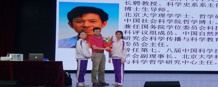 2018年9月20日下午,初17级在食堂三层报告厅举办了“水木17论坛”系列讲座——“对话大家”。本次活动由学生发展中心和初17级年级组协调组织,由初1711班同学肖子健主持。活动的主题是“阅读科学博物馆”。出席本次活动的领导有:清华大学人文学院长聘教授、科学史系系主任吴国盛,学生发展中心副主任王田,初17级年级组长张晓明,以及全体初17级师生,共600余人参与了本次活动。