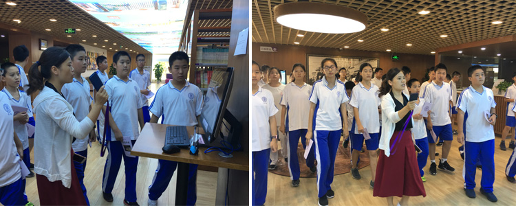 图书馆老师带领同学参观图书馆各区域