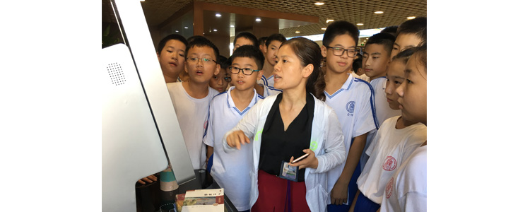 基本情况介绍完毕,在图书馆老师的带领下,同学们开始前往图书馆各个楼层的不同的藏书区域进行逐一参观。参观过程中老师结合具体场景进一步详细讲解本馆藏书的特色、图书的排架分布,为同学们演示馆内自助借还、自助查询、图书定位等设施的使用。在参观的过程中,同学们带着好奇和兴奋的心情,认真听取老师的介绍,亲身体验图书馆便捷新奇的设施,也提出了很多老师没有讲到的小问题,老师都耐心一一解答。