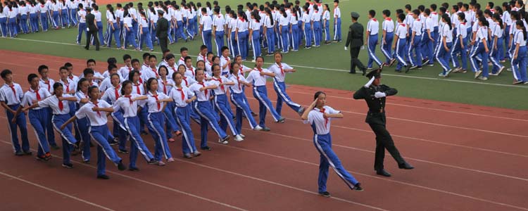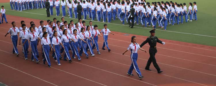 会议第一项是军训成果展示,由军训营营长同志主持。首先,是军训阅兵式。王校长依次检阅各班,伴随着激动人心的音乐,校长对同学们亲切问候,同学们也回以热烈的欢呼。“同学们好!”“校长好!”“同学们辛苦了!”“为学校争光!”同学们昂首挺胸,器宇轩昂,展现出青春的风采。