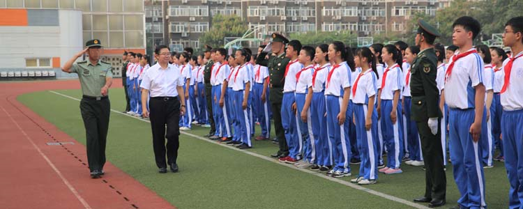 接着,是军训分列式。标兵迅速就位,初18级1到14班依次以方阵形式进入主席台前等待检阅。同学们的队伍整齐有序,个个精神抖擞、步伐矫健、声音响亮地经过主席台前,充分展示了清华少年的别样风采。