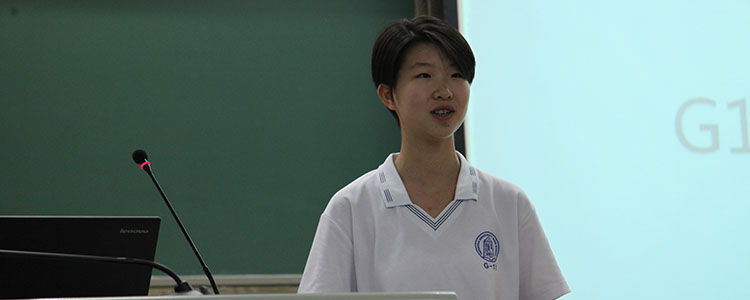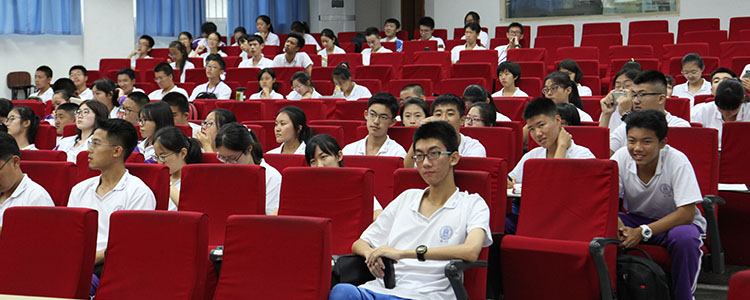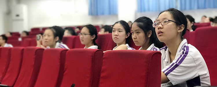 高中部的同学在认真聆听会场发言