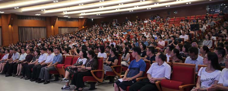 然后,教学管理与研究中心张苏主任做题为“了解课程,做好衔接”的报告。她介绍了初中教学的教学原则、教学目标、课程结构、和课程评价等方面的问题,阐释了18级中考的相关问题,并提出了具体的学习要求和建议。
