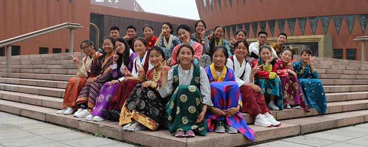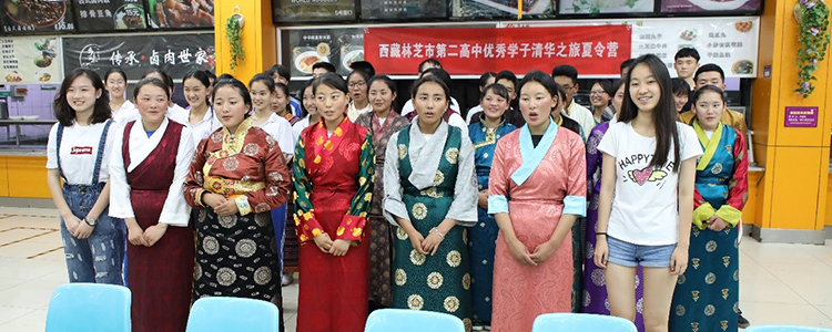 林芝二高的同学们身着藏装在清华大学留影