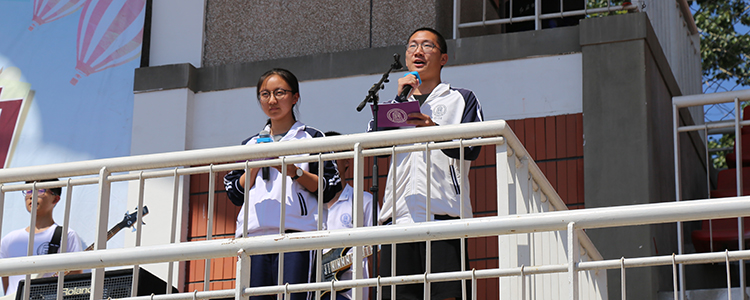 校学生会主席蒋明非、校团委秘书长王若诗主持加油会