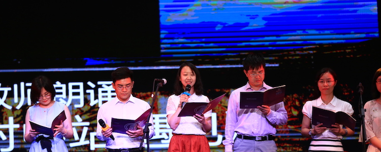 教师代表通过诗朗诵抒发了对三载流水岁月的情感以及对毕业生的嘱托。教师诗朗诵结束后,学生代表为老师们献花,表达真挚的感谢。
