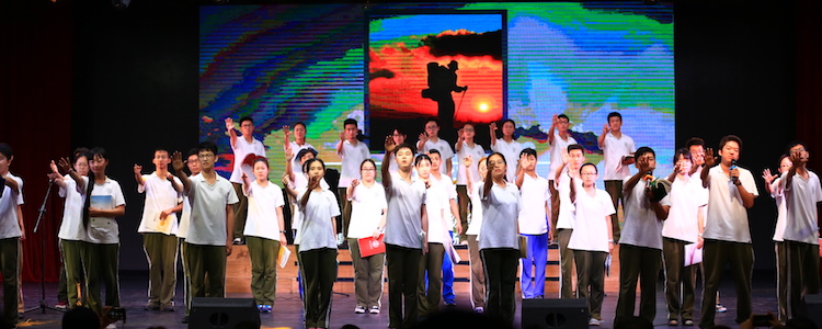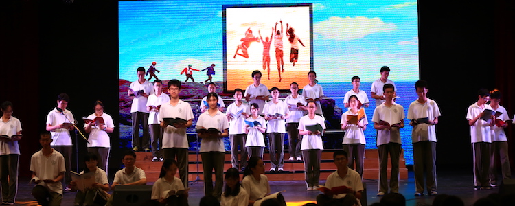 最后,在高15级毕业生冷延鹏同学的带领下,全体毕业生进行毕业宣誓。宣誓完毕后,合唱团共同唱响毕业歌曲《在此刻》和《再回首》。在动人的歌声中,2018届高中毕业典礼圆满结束。同学们手拿“写给自己二十年后的一封信”放入信箱,依次走出会场。