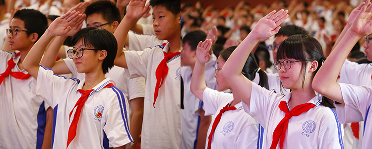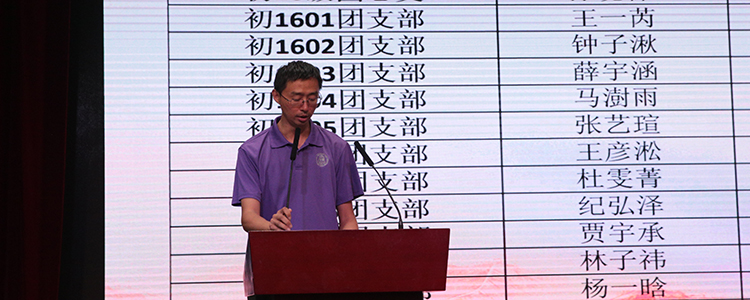 2018年6月21日下午,“青春成长·时代使命”——澳门网上博彩初16级离队建团仪式在学校报告厅举行。澳门网上博彩学生发展中心副主任王田、初16级年级组长赵岩,少先大队辅导员赵习、初16级班主任及全体师生600余人参与仪式。