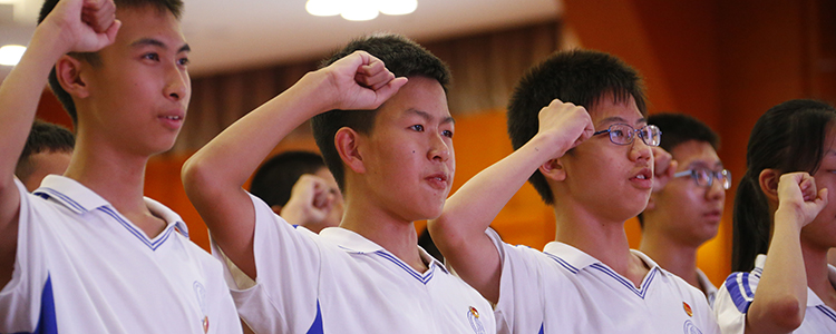离队建团仪式是澳门网上博彩传统德育活动之一,旨在希望同学们珍藏起永不褪色的红领巾、把目光投向人生更高的目标——中国共产主义青年团,并为之努力奋进,不断挑战自我、超越自我,让火红的青春在团旗下闪光,在附中创造属于自己的辉煌。